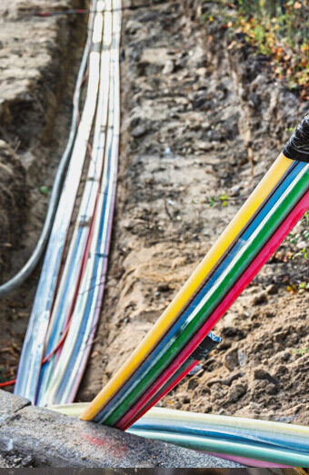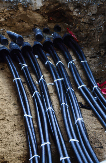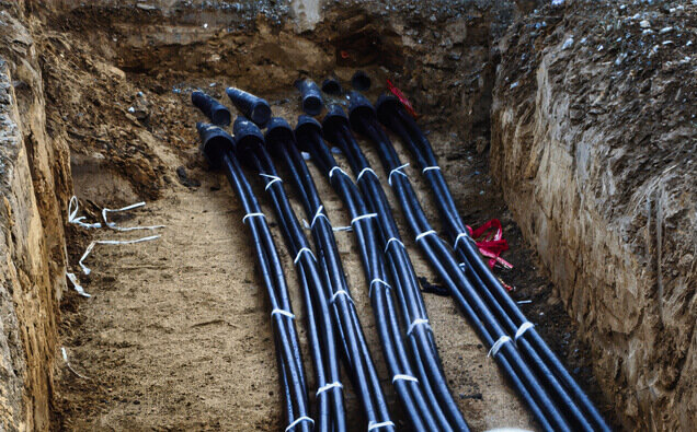 Expert installation of mains cabling from network pillars to metre boxes, ensuring correct segregation, depth, and protection according to distributor regulations.